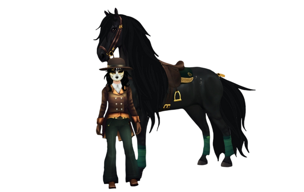 ✩°𓏲⋆REITER OUTFITSchicke ReitjackeDunkelgrüne TanzhosenHaselnussbraune Handschuhe von Rex StamperBraune Reiter StiefelStaubiger Rostbrauner Hut